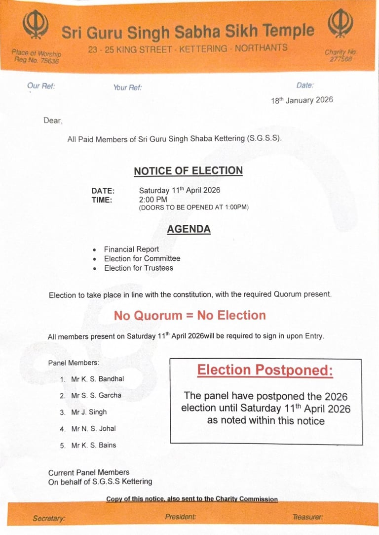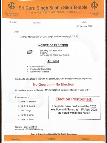 WEEKLY SAMAGAM GURDWARA SRI GURU SINGH SAHIB KETTERING