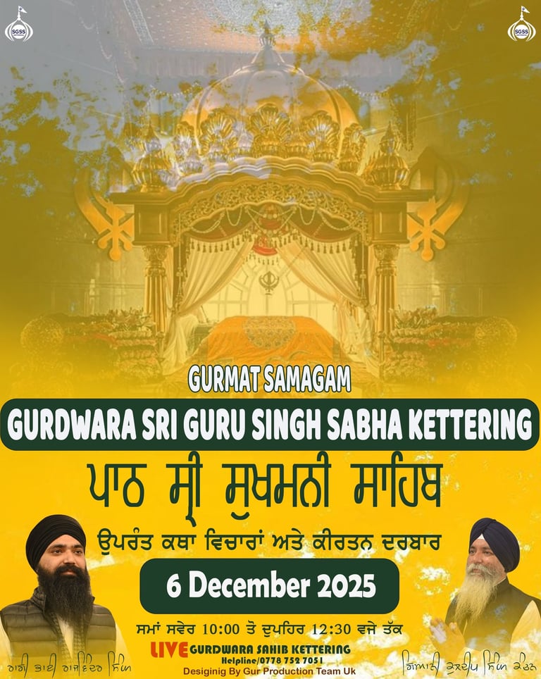 WEEKLY SAMAGAM GURDWARA SRI GURU SINGH SAHIB KETTERING
